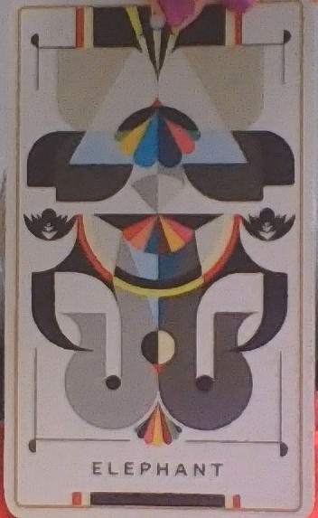 I love the Elephant card. When she says to “validate your wild, dynamic, creative desires while also honoring your fears” rings true for me. Most of you may think I’m fearless. I am not afraid to try new ideas even if just by myself. My fears will keep me from achieving those ideas. If I am doing a comedy show and I watch the act before me and they are great! How will I follow that set with mine. Will they laugh, leave the room? I don’t know but it is scary. When I am fearful, it’s because I haven’t followed through with what needs to be done. Did I practice my routines, did I pay those bills, did I make that important phone call even though it may be painful, did I apologize when needed, did I lie about something because I was afraid what would happen if I told the truth? Elephant keeps me on my toes!!